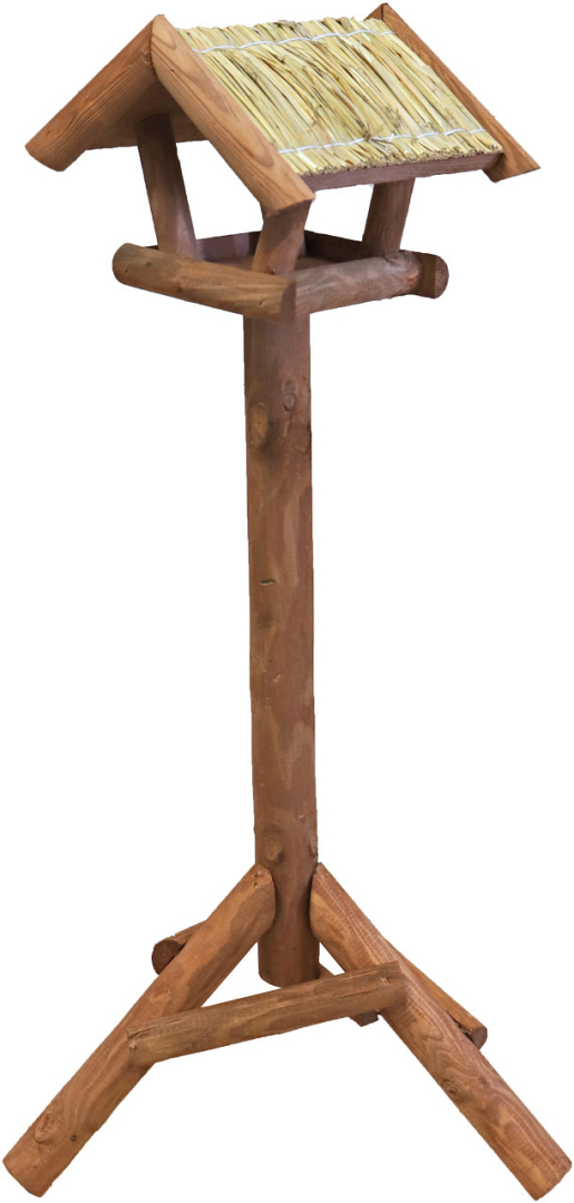 Het voederhuis mini op poot met stro dak is een gezellig en duurzaam voederhuis voor vele soorten buitenvogels. Het voederhuis is makkelijk te verplaatsen en is gemaakt van vurenhout en is afgewerkt met dakleer.