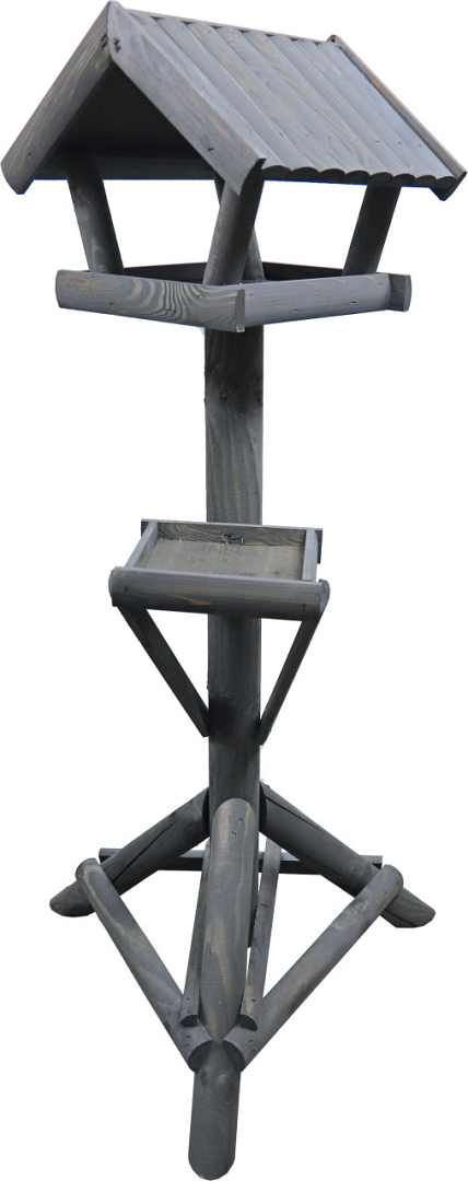 Duurzaam voederhuis op poot, gemaakt van geïmpregneerd vurenhout en voorzien van een extra voederplateau. Kan het hele jaar gebruikt worden. Afm. 63 x 55,5 x 128,5 cm.