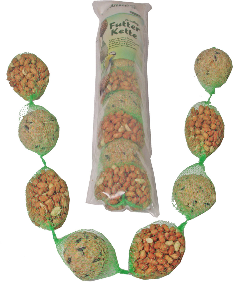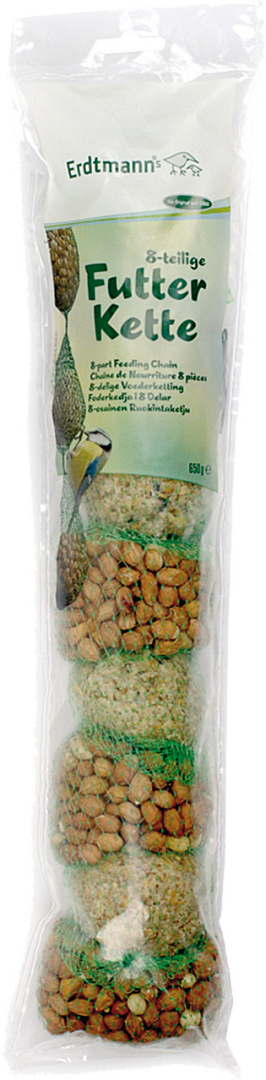 Erdtmanns mixketting bevat vier mezenbollen en vier pindanetjes. De vogels zullen genieten van deze ketting voor langere tijd. De mixketting zorgt ervoor dat je niet elke dag hoeft te voeren en dat de buitenvogels elke dag zullen terugkomen.
