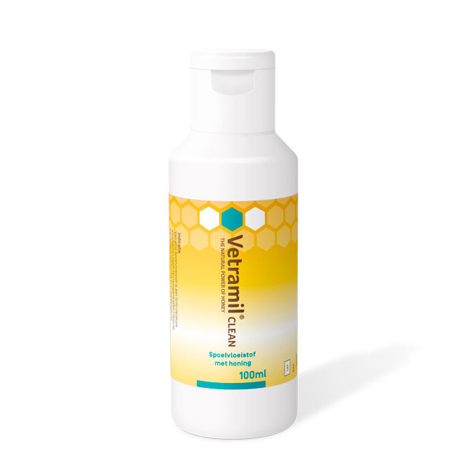 Vetramil Clean ondersteunt het herstellend vermogen van de huid bij kleine en grote huisdieren. Op basis van honing en propyleenglycol voor lokale toepassing.