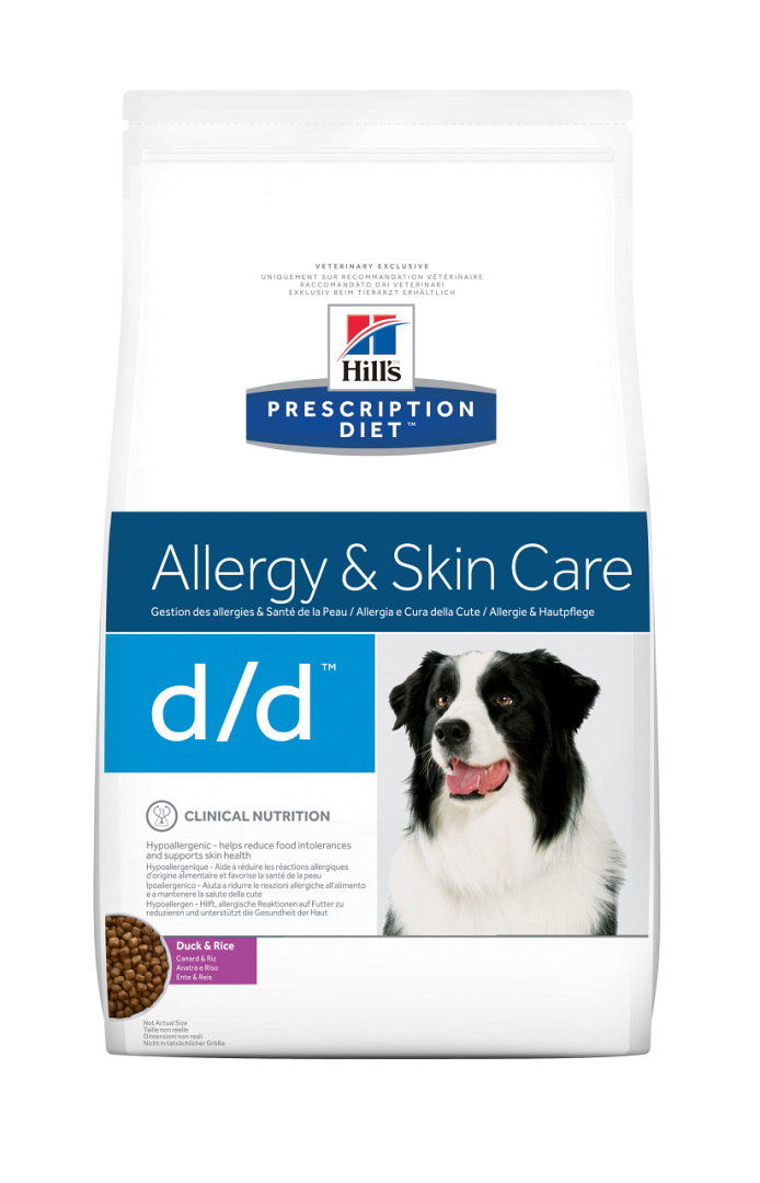 Een allergie kan zich uiten in de vorm van braken, diarree of een huidaandoening. Door de hoeveelheid omega-3 vetzuren in Hill's Prescription Diet D/D wordt de huid gezond gehouden. Doordat eend of zalm een niet-veelvoorkomend voedingsmiddel is, is de kans op een allergie klein. De toegevoegde antioxidanten helpen bij de weerstand van de hond en voorkomen symptomen van een voedselallergie.