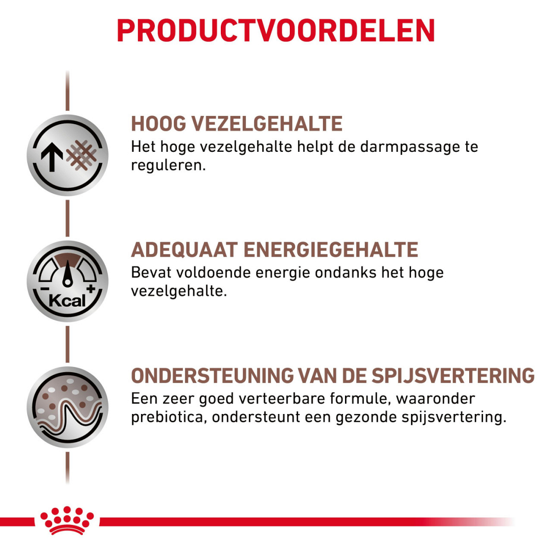 Royal Canin Hondenvoer Gastrointestinal High Fibre is een speciaal samengestelde voeding die helpt om de spijsvertering van jouw hond gezond te houden.