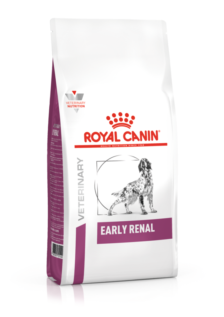 Royal Canin hondenvoer Early Renal is een volledige dieetvoeding voor honden ter ondersteuning van de nierfunctie bij chronische nierinsufficiëntie, dankzij hoogwaardige eiwitten en een beperkt fosfor- en ruw eiwitgehalte. Early Renal droogvoeding is ontwikkeld voor de vroege stadia van chronische nierziekte.