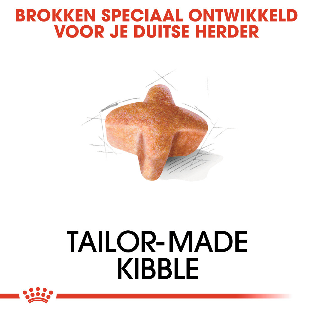 Royal Canin German Shepherd Adult is een rasspecifieke voeding speciaal voor de volwassen Duitse herdershond vanaf 15 maanden oud.
