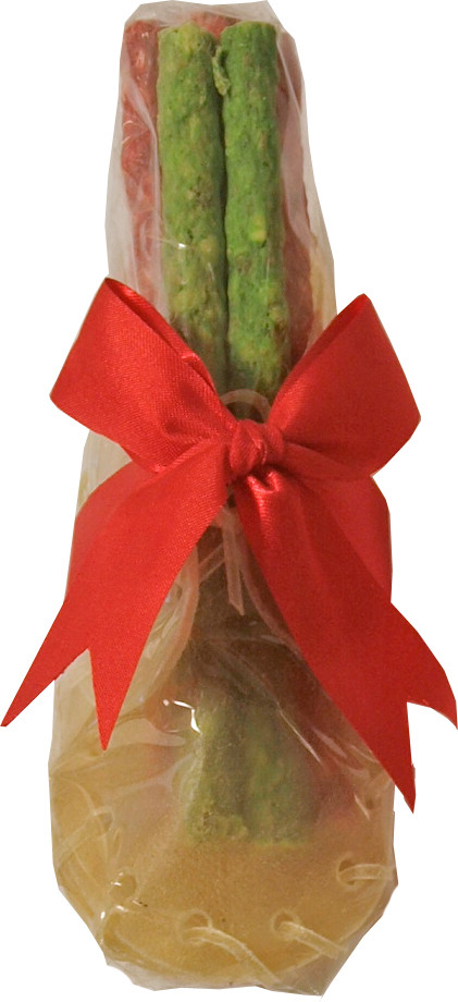 Feestelijke kauwschoen van buffelhuid, gevuld met munchy kauwstaafjes.