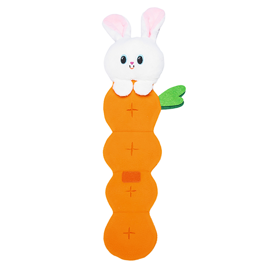 Dit leuke speeltje Beeztees Hide & Seek Paashaas Wortel heeft alles wat je van een hondenspeeltje verwacht. Zo zit er knisperfolie in de oren, een piep in het hoofd en kun je in de wortel, snoepjes en koekjes verstoppen. Door zijn of haar neus te gebruiken kan jouw hond vervolgens op zoek gaan naar deze overheerlijke traktaties. Het denkspel beschikt over vier verstopplekjes. Het zoeken naar hondensnoepjes is niet alleen leuk voor jouw hond, maar draagt ook bij aan mentale stimulatie. Daarnaast leert de hond zijn of haar neus te gebruiken. Om het speurwerk extra uitdagend te maken kun je de wortel voor de zoektocht weer dicht vouwen. Al met al, een fantastisch speeltje voor je hond waardoor Pasen ook voor jouw hond één groot feest wordt!