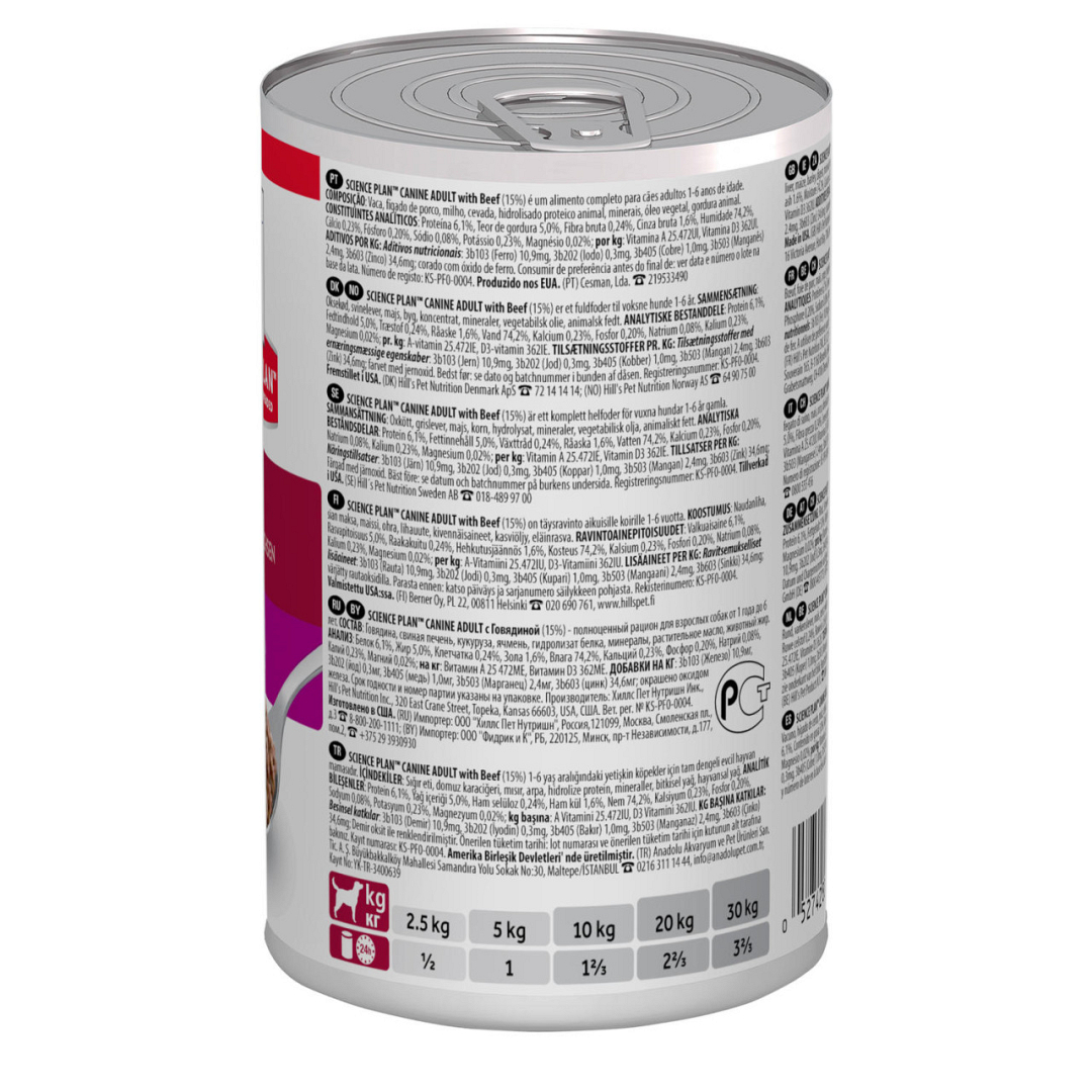 Je hond zal dol zijn op Hill's Adult Beef vanwege de zachte en gladde textuur. Dit hondenvoer heeft de perfecte balans tussen smaak en voeding, om het ideale lichaamsgewicht te ondersteunen van volwassen honden van 1 tot 6 jaar oud.