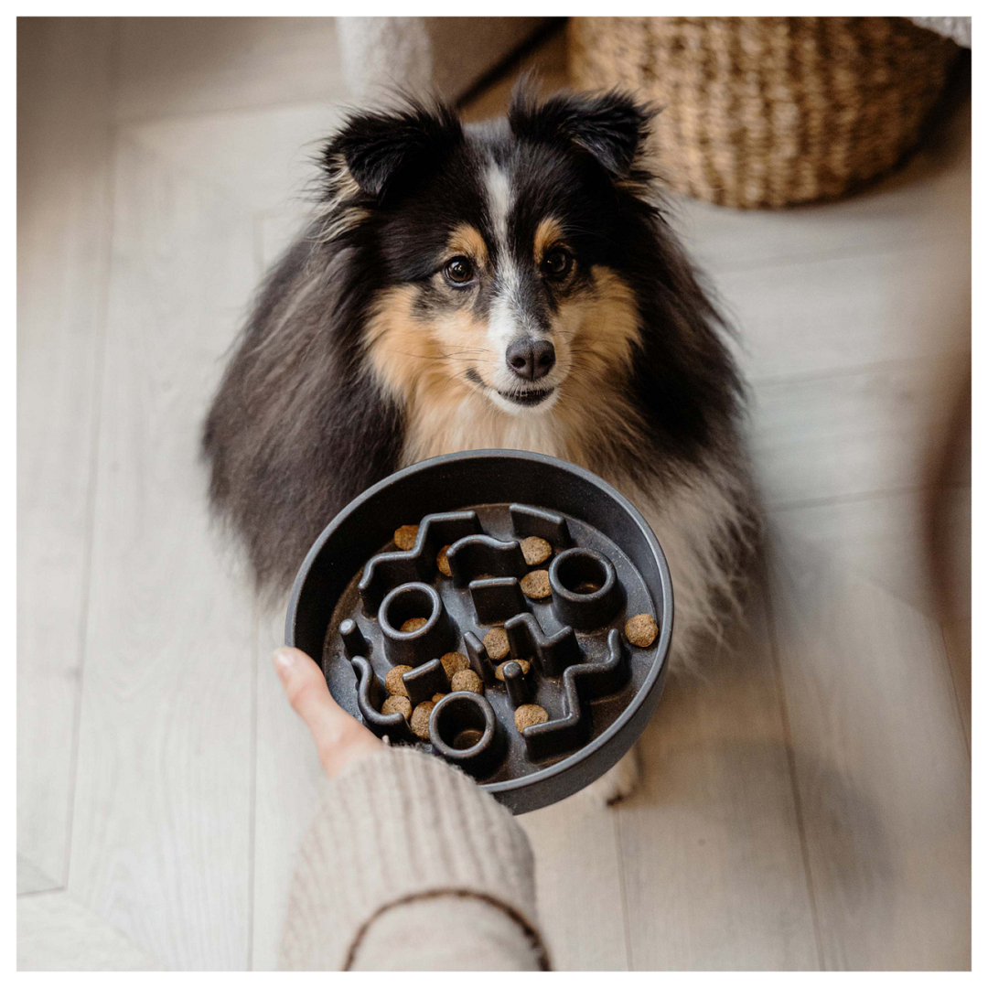 De stijlvolle en praktische District 70 Slow Feeder biedt een manier om jouw hond langzamer te laten eten. Heeft jouw hond zijn maaltijd al op voordat je het weet? En moet hij of zij vervolgens braken? Het schrokken van eten kan gezondheidsnadelen met zich meebrengen, zoals de kans op overgewicht of zelfs een maagtorsie.