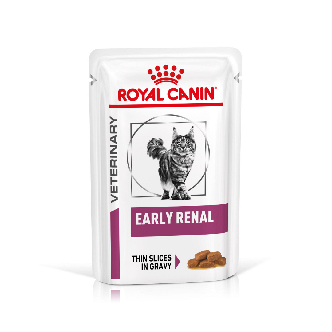 Royal Canin kattenvoer Early Renal is een volledig dieet natvoer voor de ondersteuning van de nierfunctie bij chronische nierinsufficiëntie van volwassen katten.