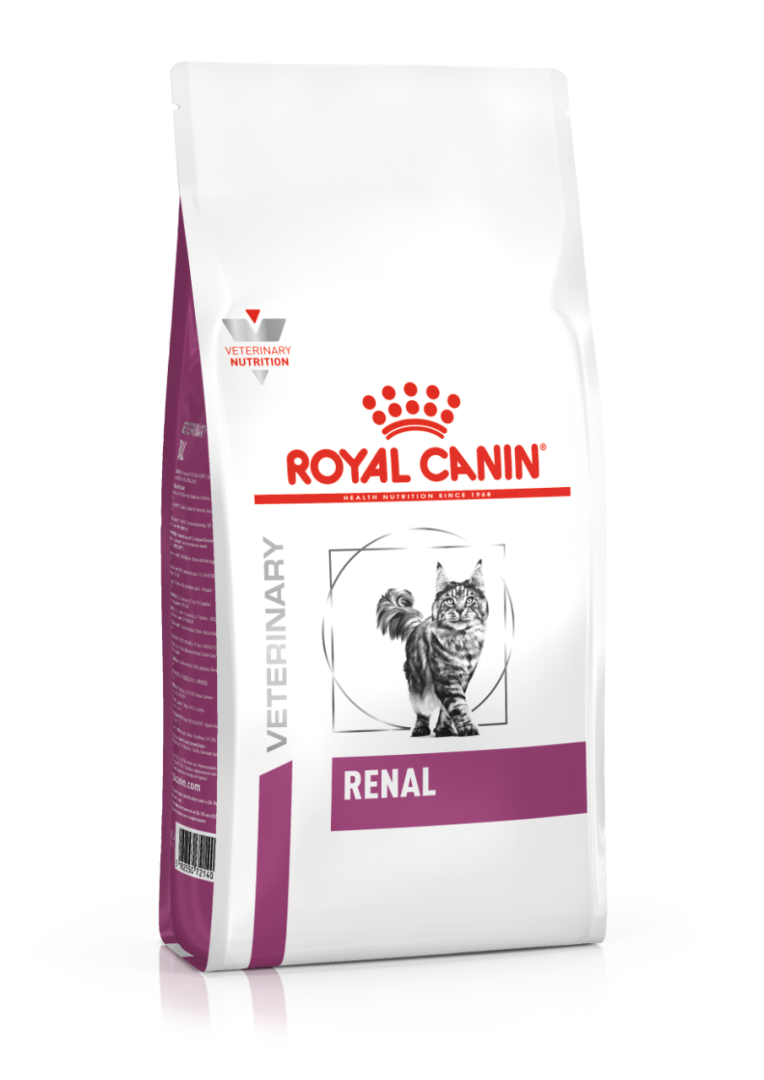 Royal Canin kattenvoer Renal droogvoeding is een volledige dieetvoeding voor katten ter ondersteuning van de nierfunctie bij chronische nierinsufficiëntie, dankzij hoogwaardige eiwitten en een beperkt fosfor- en ruw eiwitgehalte. Renal droogvoeding is ook ontwikkeld ter vermindering van oxalaatsteenvorming, dankzij een laag calciumgehalte, laag gehalte aan vitamine D, en urinealkaliserende eigenschappen.