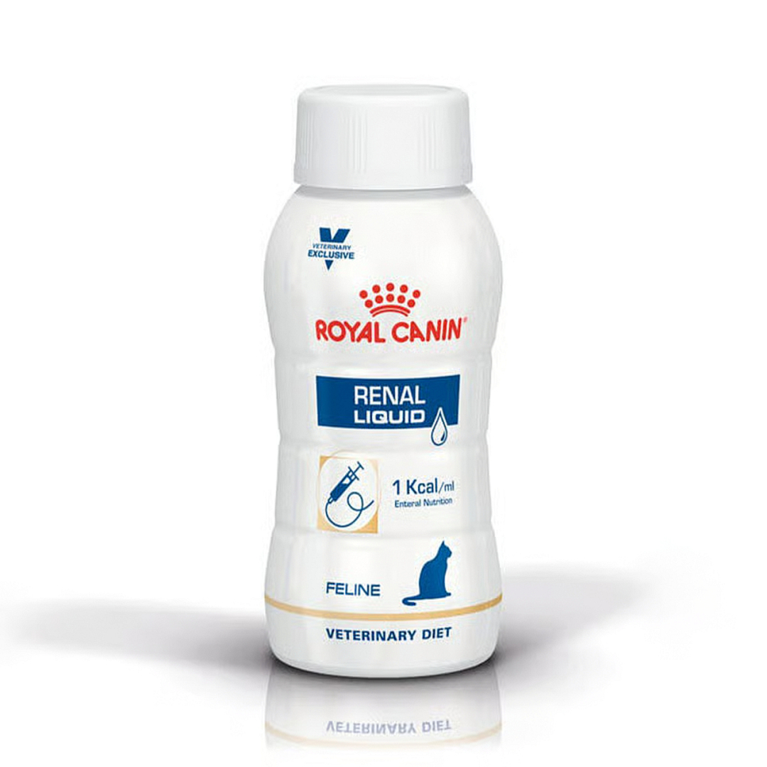 Royal Canin Renal Liquid Kat is een complete, vloeibare dieetvoeding voor volwassen katten die kampen met chronische of tijdelijke nierinsufficiëntie. De voeding is ontwikkeld om katten te ondersteunen die in een herstelfase zitten als gevolg van ziekte of een operatie. De voeding is arm aan fosfor en bevat alleen hoogwaardig eiwit om de belasting van de nieren te minimaliseren. Dankzij de hoge energieconcentratie heeft uw kat bovendien voldoende aan een kleinere hoeveelheid voer. De vloeistof kan worden toegediend via een sonde.