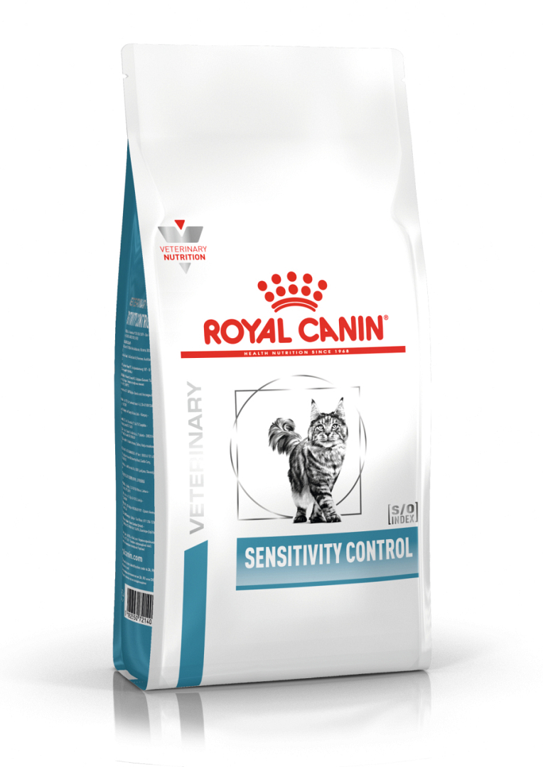 Voedselintolerantie Heeft je kat regelmatig jeuk, huidontstekingen of oorpijn? Heeft ze maag- en darmproblemen zoals winderigheid, diarree en braken? En dat na het eten van bepaalde voeding? Dan kan dit wijzen op een voedselintolerantie. Het komt niet zo vaak voor en het is zelden gevaarlijk voor je kat. Maar ze kan er veel last van hebben. Als je de tijd neemt om uit te vinden wat de oorzaak is en overgaat op de juiste voeding, dan kan je kat nog jarenlang van een gezond leven genieten. Speciale dieetvoeding van de dierenarts Sensitivity Control van Royal Canin is speciaal ontwikkeld om intoleranties voor bepaalde voedingsstoffen of ingrediënten te verminderen. Het is een uitgebalanceerde, volledige dieetvoeding die je je kat haar leven lang kunt geven. Het vermindert de kans op voedselintolerantie en beschermt de huid tegen invloeden van buitenaf. Het draagt bij aan een gezonde vacht en een glanzende huid.