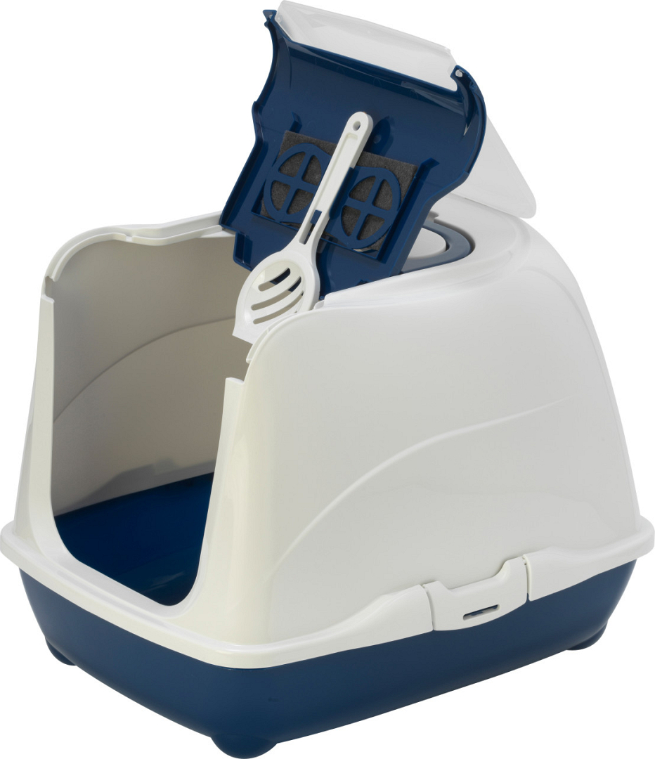 De Flip Cat kattenbak van Moderna is een mooi vormgegeven kunststof kattenbak met een handig deurtje in de kap zodat je gemakkelijker kunt schoonmaken.
