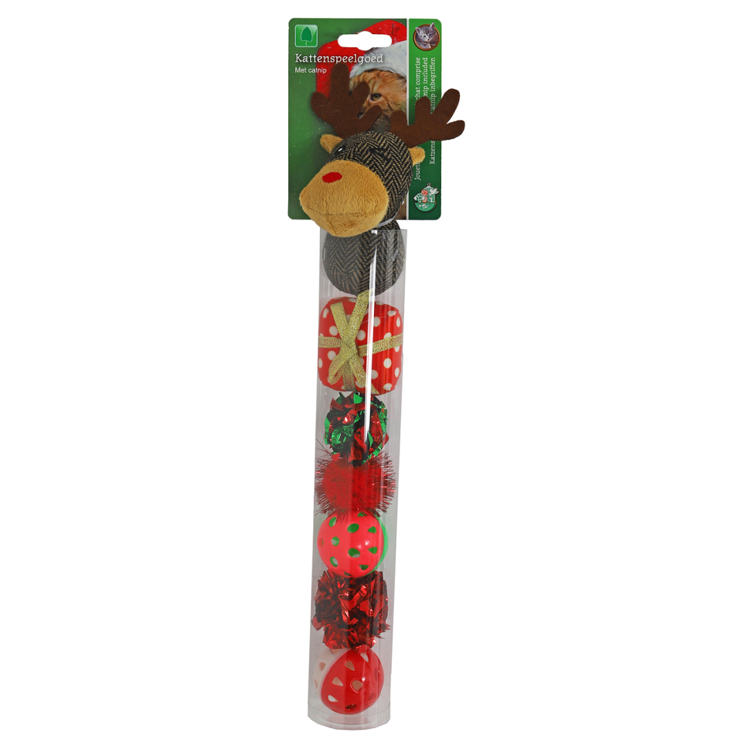 De magische kerstkoker is een feestelijk gevulde schatkist boordevol kattenspeeltjes dat de kerstgedachte tot leven brengt. In deze koker vind je een charmant kerstrendier (met overheerlijke catnip) om te knuffelen, vrolijke kunststof speelballetjes voor eindeloos rollen en stoeien, knisperballetjes in traditionele kerstkleuren voor extra speels plezier, en zelfs een zacht pluchen cadeautje dat je kat kan 'uitpakken'. Elke speelse verrassing is ontworpen om de kerstvreugde te delen met je harige vriend, terwijl de glanzende en knisperende texturen zorgen voor urenlang vermaak. Maak van deze kerst een onvergetelijke tijd voor je kat.