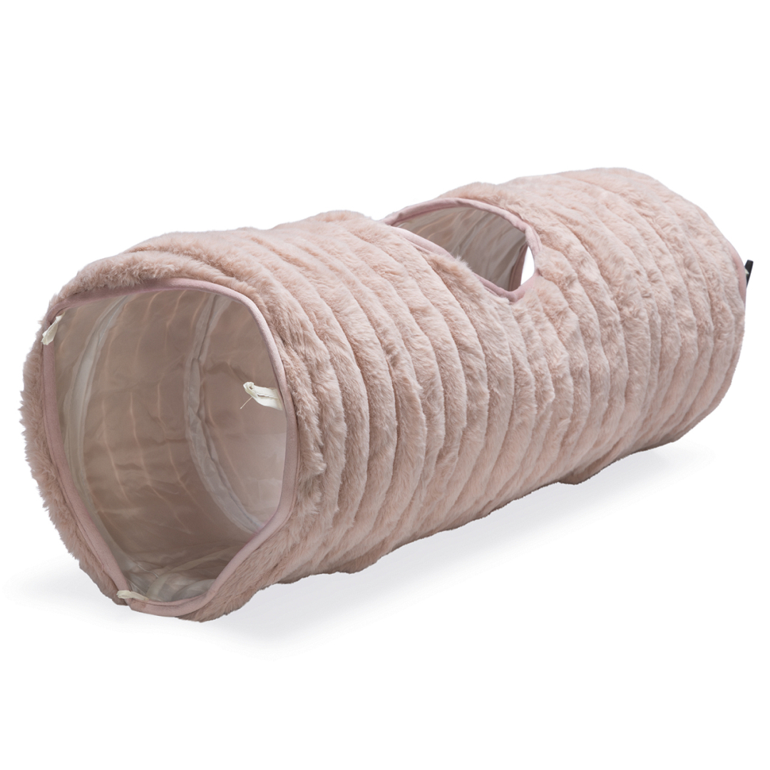 Kattentunnel van prachtige ribstof, met doorkijkgat halverwege voor extra speelplezier. Plat op te bergen.
