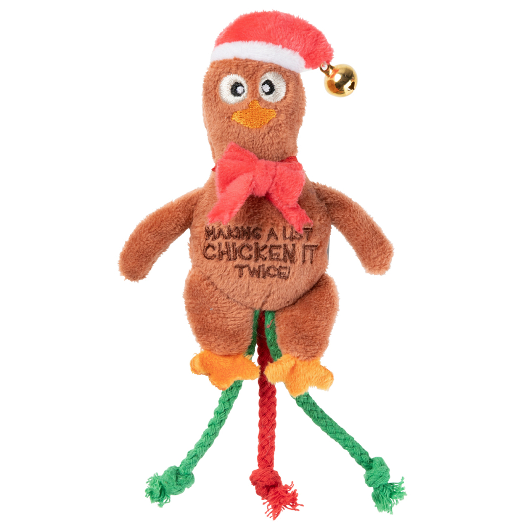Het kerstplezier van je kat wordt extra vrolijk! De FuzzYard Chicken It Twice Chook is het ultieme kattenspeeltje, met een pluchen ontwerp zonder vulling, touwpoten om mee te slaan en te schoppen, en een schattige kerstmuts met een rinkelende bel voor feestelijke kattenkwaad. Perfect om mee te slaan, springen en spelen, het hele seizoen lang!