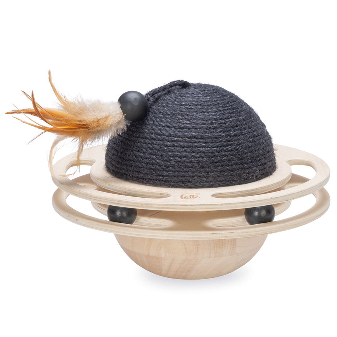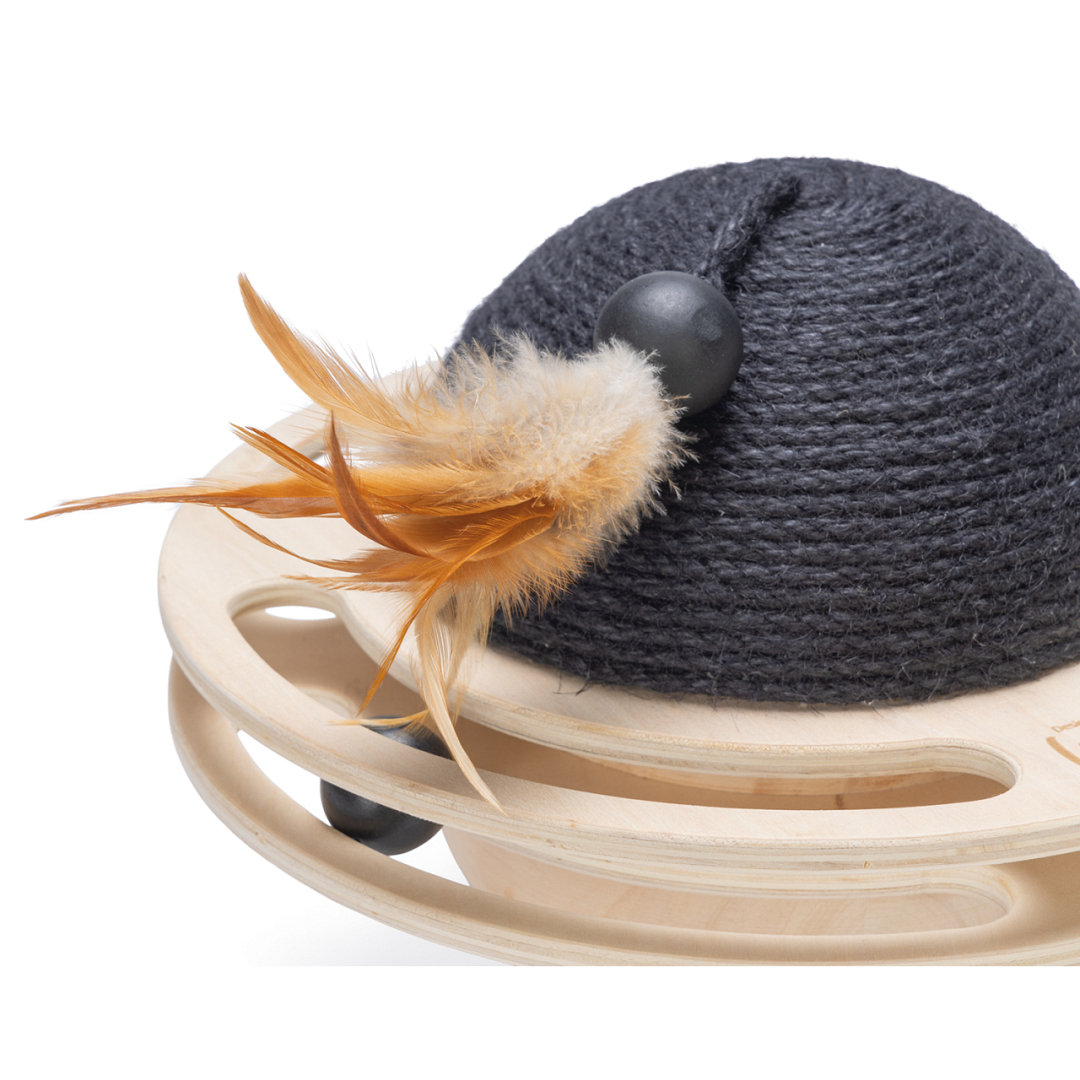 Het speeltje is nog leuker voor jouw kat door toevoeging van het houten frame met speelballetjes, rondom de speelbol. De bolletjes zullen in het houten frame gaan rollen, zodra jouw kat er met zijn of haar pootjes tegenaan tikt. Superleuk om het jachtinstinct te triggeren. Al met al, zal jouw kat dol zijn op speelbol Baya.