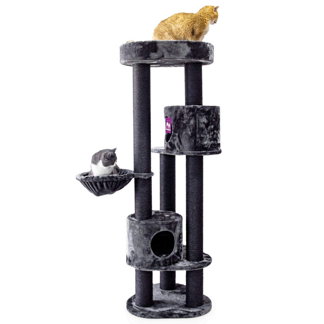 Stabiel krabmeubel met 2 slaapruimtes, hangmat en superzacht divan. Extra hoog en ruimtebesparend. Afm. 59 x 56 x 180 cm.
