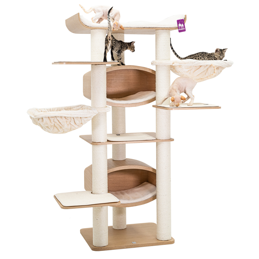 Hoog krabmeubel met meerdere heerlijke lig- en verstopplekken. Afm. 90 x 60 x 187 cm.