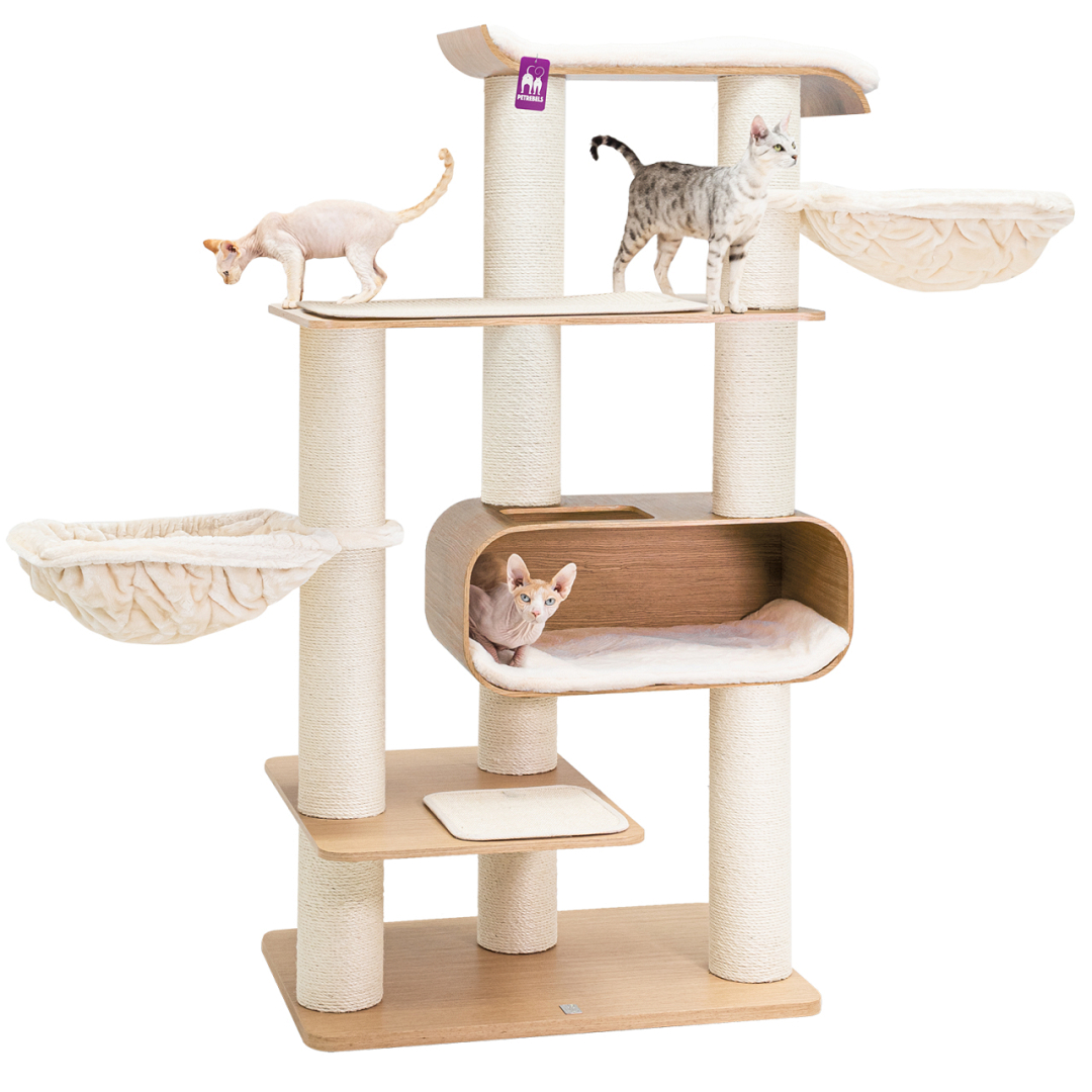 Het Petrebels krabmeubel Natural Stars Virgo 173 is met recht een supermodern krabmeubel wat fantastisch staat in je living. Deze krabpaal is hoog en een echte blikvanger in je huis, hij is mooi, luxe afgewerkt en past door de matching kleuren in elk interieur. Maar belangrijk natuurlijk is dat deze krabpaal een feestje is voor katten. Echt alles wat je kat nodig hebt zit erop: een XXL-loungemand bovenin, twee zachte uitwasbare hangmatten om in te relaxen en een lekker groot kattenhuis. Alles met zachte pluche en lekker dikke sisal om aan te krabben. Dit is de perfecte krabpaal voor jouw kat! vertrouwen is.
