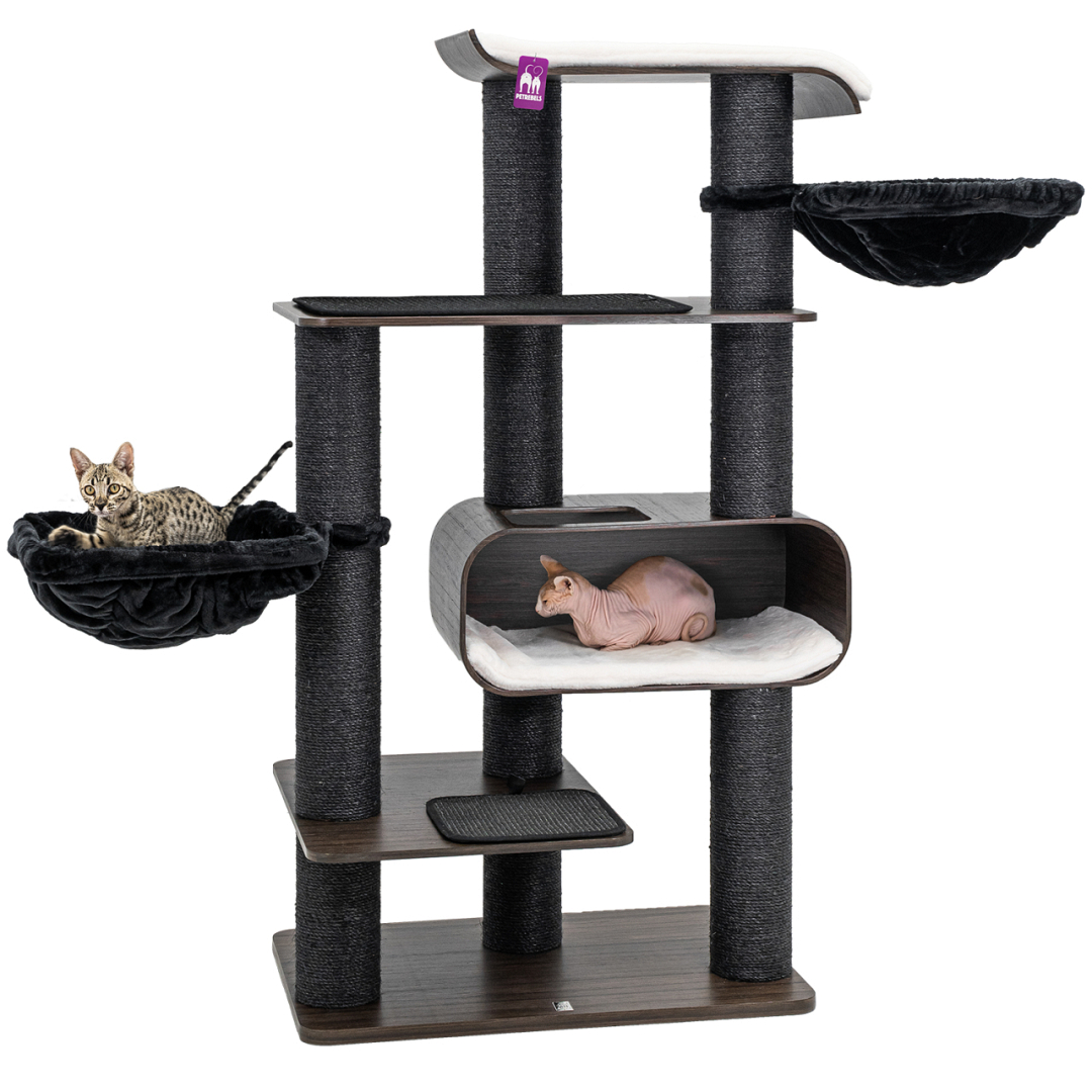 Het Petrebels krabmeubel Natural Stars Virgo 173 is met recht een supermodern krabmeubel wat fantastisch staat in je living. Deze krabpaal is hoog en een echte blikvanger in je huis, hij is mooi, luxe afgewerkt en past door de matching kleuren in elk interieur. Maar belangrijk natuurlijk is dat deze krabpaal een feestje is voor katten. Echt alles wat je kat nodig hebt zit erop: een XXL-loungemand bovenin, twee zachte uitwasbare hangmatten om in te relaxen en een lekker groot kattenhuis. Alles met zachte pluche en lekker dikke sisal om aan te krabben. Dit is de perfecte krabpaal voor jouw kat! vertrouwen is.