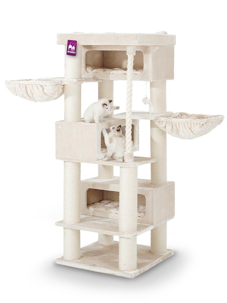 Petrebels krabmeubel Turnpike 200 is een feest voor je katten met zijn royale slaaphuisjes, luxe hangmatten, dik speeltouw en oneindig veel krabstammen. Dit krabmeubel heeft alles in huis wat je kat nodig heeft voor heel veel krab- en klimplezier. En is door zijn strakke vorm en trendy kleurencombinatie bijzonder fijn om naar te kijken.
