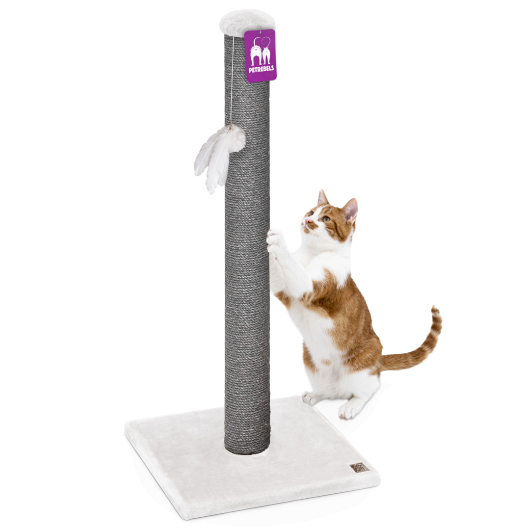 De Petrebels Little Rebels krabpaal Maine 90 Deluxe is stabiel, mooi én heerlijk om aan te krabben. Deze krabpaal is uitgevoerd in een mooie trendkleur én, omdat spelen net zo belangrijk is als lekker krabben, hebben we er ook een uitdagend kattenspeeltje aan bevestigd: de unieke Funky Rebel. Dat is een zacht balletje van pluche met twee veren én een rinkelend kattenbelletje eraan. Leuk toch?! De kwaliteit van deze krabpaal is zoals je hem gewend bent van Petrebels: hij kan prima tegen een stootje en gaat dus lekker lang mee. Deze klassieker is geschikt voor alle katten en staat door zijn compacte formaat mooi in elke kamer.