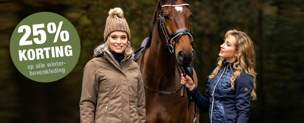 Kom langs op de ruitersportafdeling in onze winkel en profiteer van 25% korting op heel veel winterse bovenkleding! Wees er snel bij want de actie geldt zolang de voorraad strekt. Op = op.