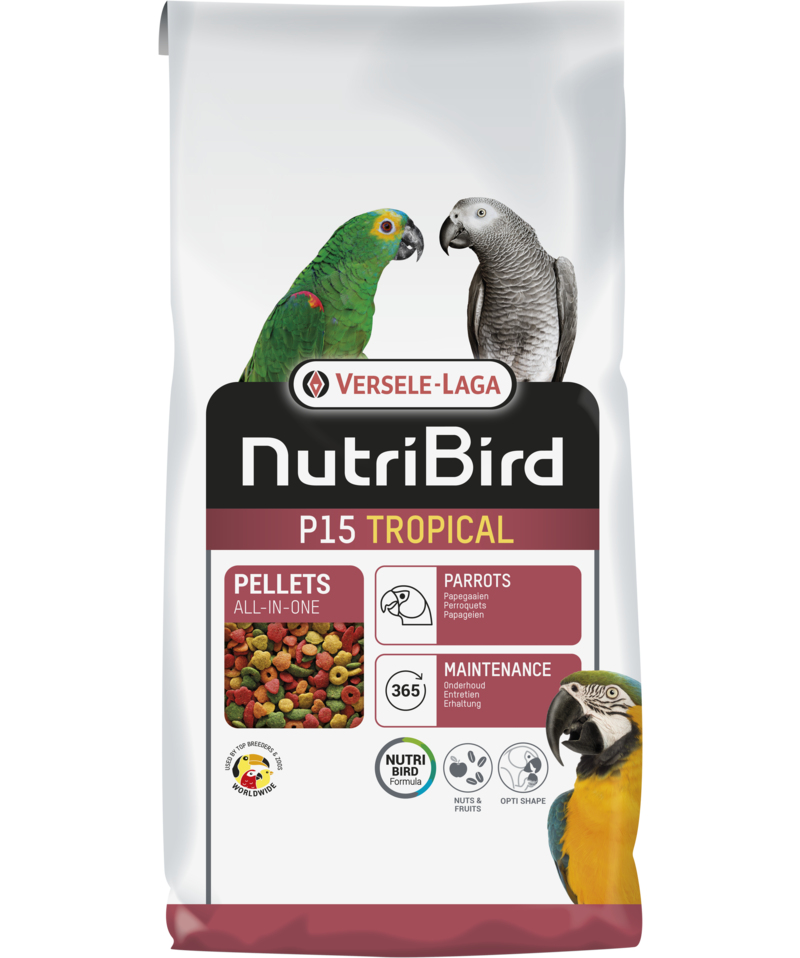 Versele-Laga NutriBird P15 Tropical is een onderhoudsvoeder voor papegaaien (multicolor). Het is een volledig uitgebalanceerd voeder met alle nutriënten die de vogel nodig heeft. De pelletvorm voorkomt selectief eetgedrag, waardoor de vogel alle nodige voedingsstoffen krijgt.